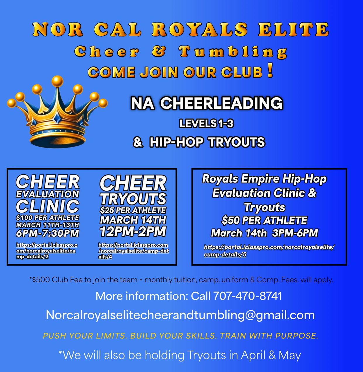Interested in becoming a member of NorCal Royals Elite Cheer and Tumbling ? We offer a Contact us today to learn more. 707-470-8741
